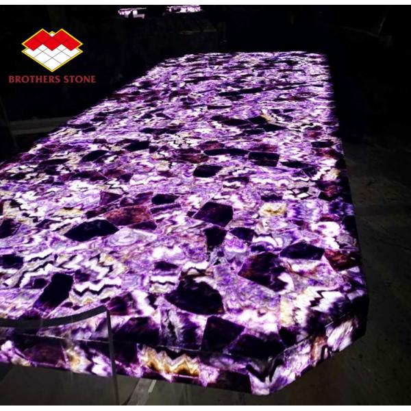 Luxury semi precious stone marble furniture amethyst slab for table top